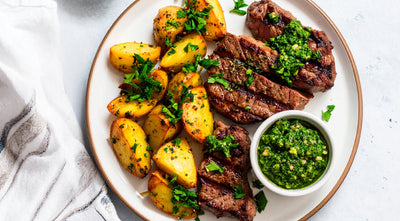 Steak de bondiola al grill con papas rústicas y chimichurri – La Fazenda 🥩